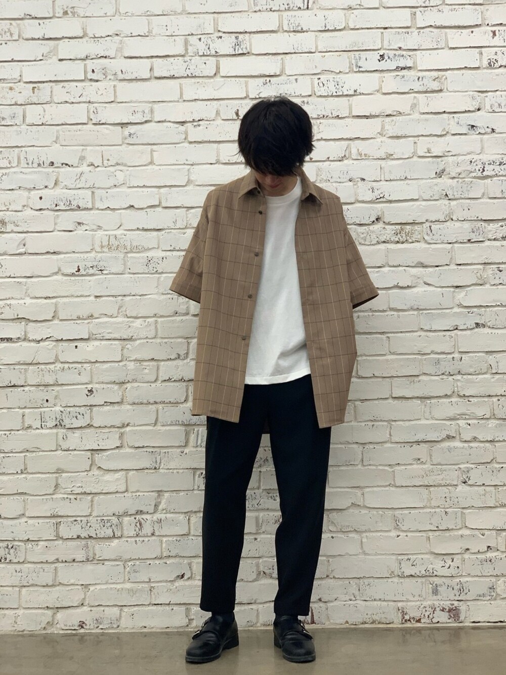 阿部まさひで(Lui's/EX/store TOKYO)のシャツ/ブラウス「5分袖 ヴィンテージチェック スリットビッグシルエットシャツ」を使ったコーディネート