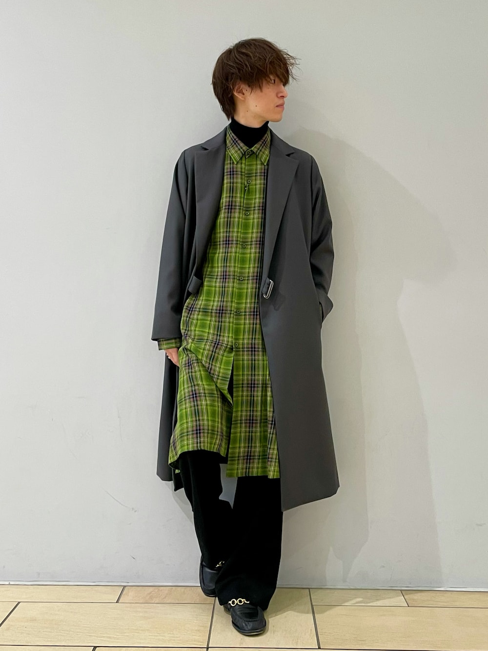 阿部まさひで(Lui's/EX/store TOKYO)のトレンチコート「ウールカルゼタイロッケンコート」を使ったコーディネート