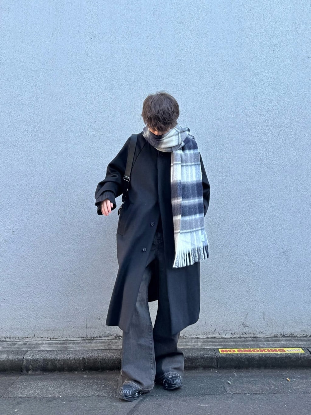 阿部まさひで(Lui's/EX/store TOKYO)のマフラー「ウール混チェックブークレーマフラー」を使ったコーディネート