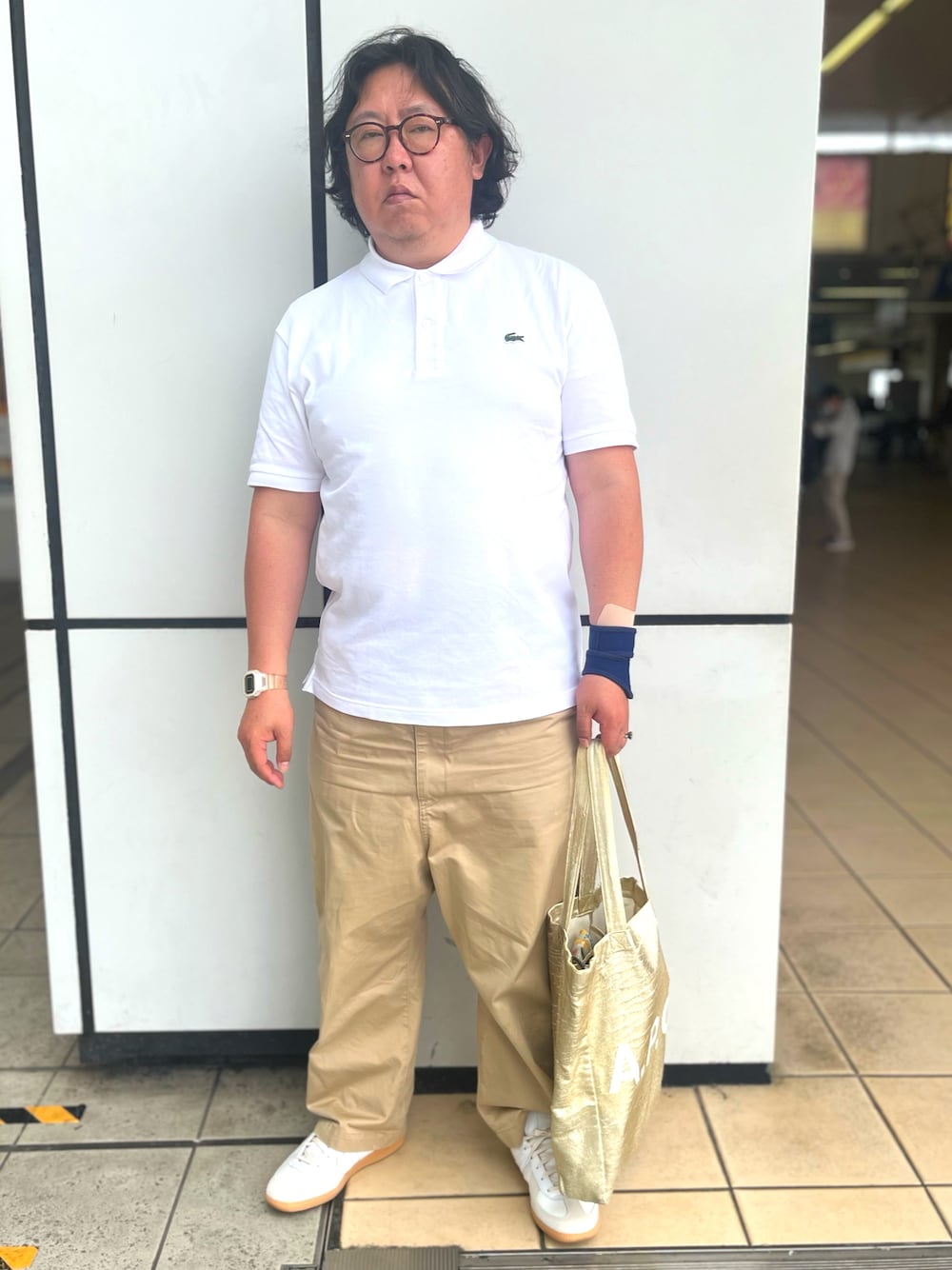 彼氏に「入るわけない」と言われていたラコステのポロが入り、チノパンはサルエルになってると言うダボっとしてクリーンな格好をしてみました。 にしても、 縦長のシルエットです。