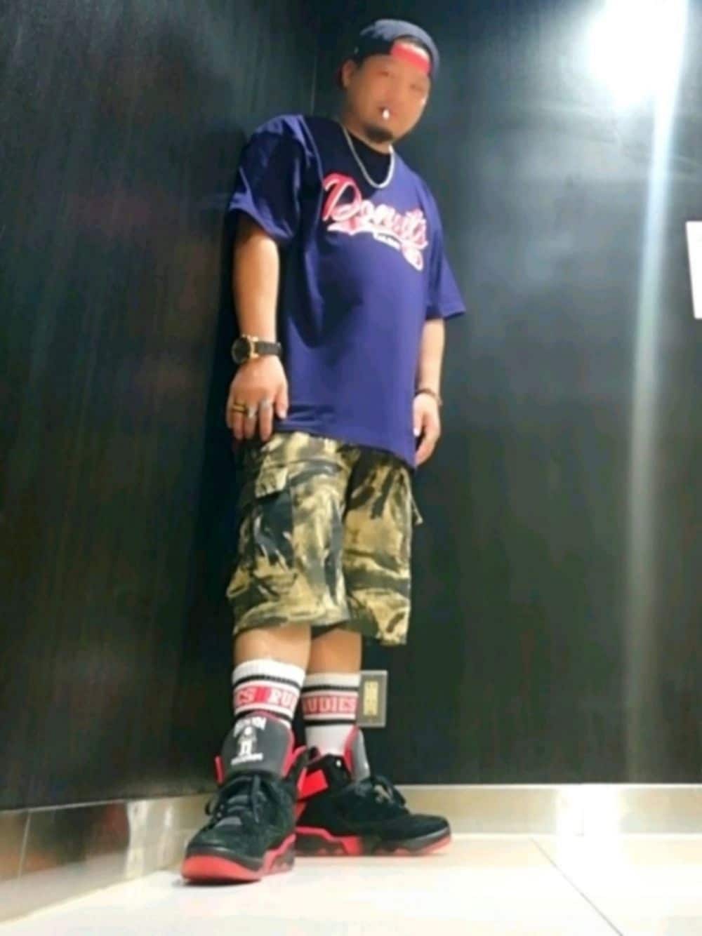 皆さん😎🌴今日も1日お疲れ様です🏝️今日もムシムシの暑さで😅💦水分補給必須な日でした😵💦🌴🇯🇲今日のコーデは上から黒赤キャップ、紺Tシャツ、カモ柄ハーフカーゴパンツ、赤ラインソックス白、黒赤ハイカットスニーカーって感じでTシャツの下に紺色タンクトップのフチが赤をチラ見せ😆って感じのコーデでした😎🌴🇯🇲🎧