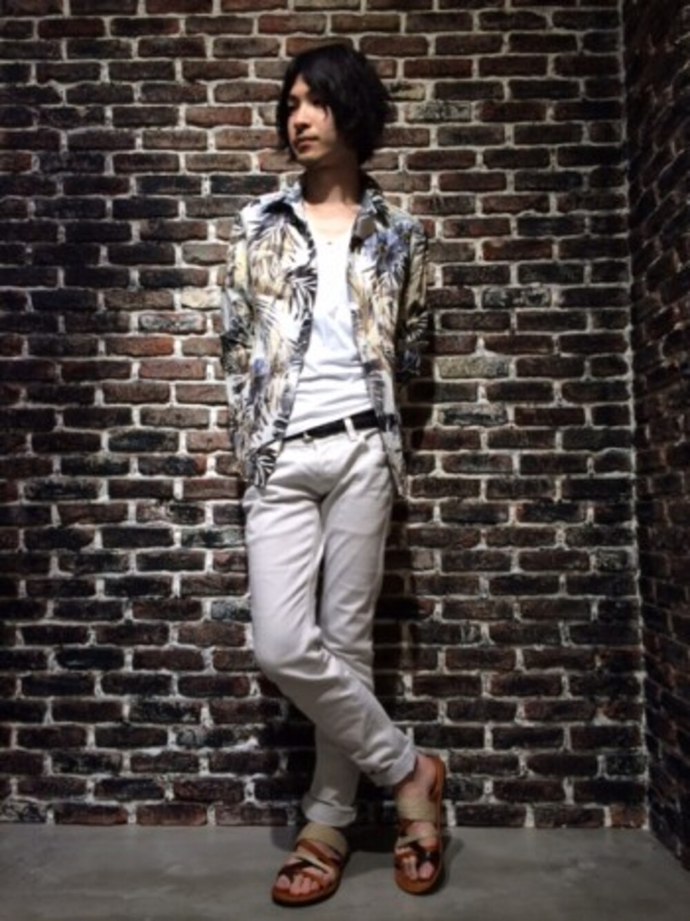 ホワイトカラーをベースに組み合わせ、花柄のシャツがアクセントになっております。 足元はサンダルを合わせる事でまさに都会的なリゾートスタイルの完成です。 シルエットもすっきりさせていることもポイントですので 是非、ご参考にして下さい!