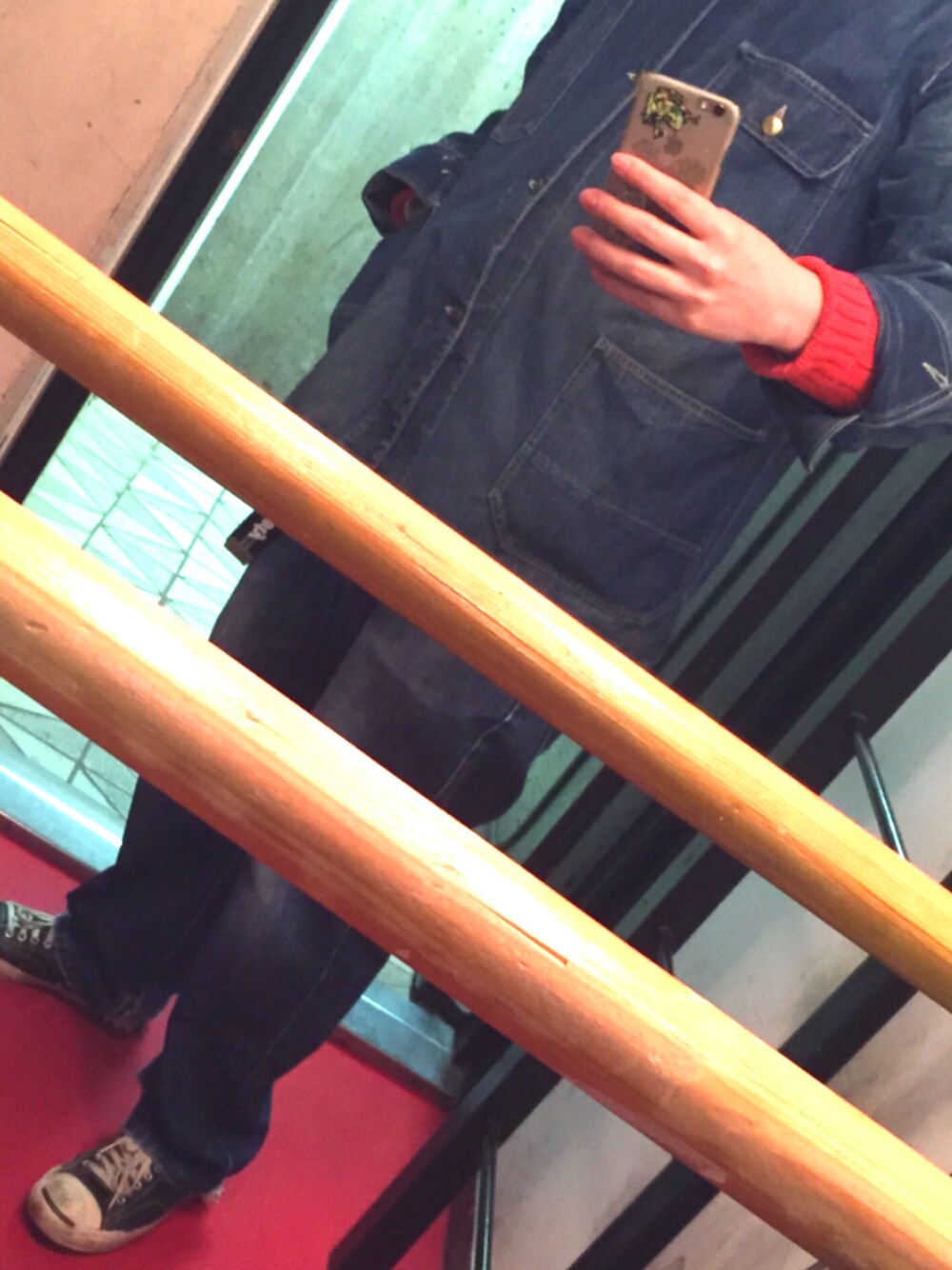 色落ちがたまたま合ってたんで 今日はデニム×デニム^ ^ 全身古着はちょっとボロ渋い感じが好き ラルフのニットも調子いい♪(´ε` )