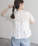 前後着用できるフリンジキャミブラウスをポイントにコーディネート☆ ストレッチ素材で履き心地抜群のパンツは、ウエストの釦でサイズ調節可能! トップスインで着ていただいても可愛いデザインです。(38サイズ着用)
