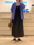 きれい色のカーディガンは、サラサラ素材で夏まで活躍してくれる便利アイテム☆ ※Mサイズ着用 キャミワンピースには、袖がパフになったボーダーカットソーを合わせて甘さをプラス!