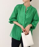発色の良いグリーンのブラウスとブラックのパンツで大人きれいめコーデ! ブラウスは光沢のあるシアー素材で上品な印象ですが、Tシャツ×デニムに羽織ったりとカジュアルなコーディネートも可愛いです♪ ボトムスは、フレディ定番人気のテーパードパンツ! さらっとした肌触りで夏でも快適にはいていただけます。 着回しのきくオススメの1本です!