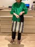 発色の良いグリーンのブラウスとブラックのパンツで大人きれいめコーデ! ブラウスは光沢のあるシアー素材で上品な印象ですが、Tシャツ×デニムに羽織ったりとカジュアルなコーディネートも可愛いです♪ ボトムスは、フレディ定番人気のテーパードパンツ! さらっとした肌触りで夏でも快適にはいていただけます。 着回しのきくオススメの1本です!