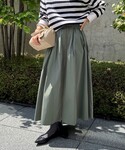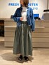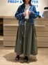 デニムシャツはショート丈なので、ふんわりロングスカートにも合わせやすくて便利。 柔らかなデニム生地で着心地も◎です。 スカートはなんとリバーシブル! カーキ×ブラックの合わせやすいカラーです。 ゴールドのzipがデザインのアクセントに。