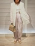 ツイードベストで秋先取りコーデ🍂 シアートップスやサテンパンツといった軽めの素材を合わせると先取りしやすいのでオススメです。