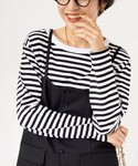 ワンピースにボーダーのロンTを襷掛けしたカジュアルコーデ!