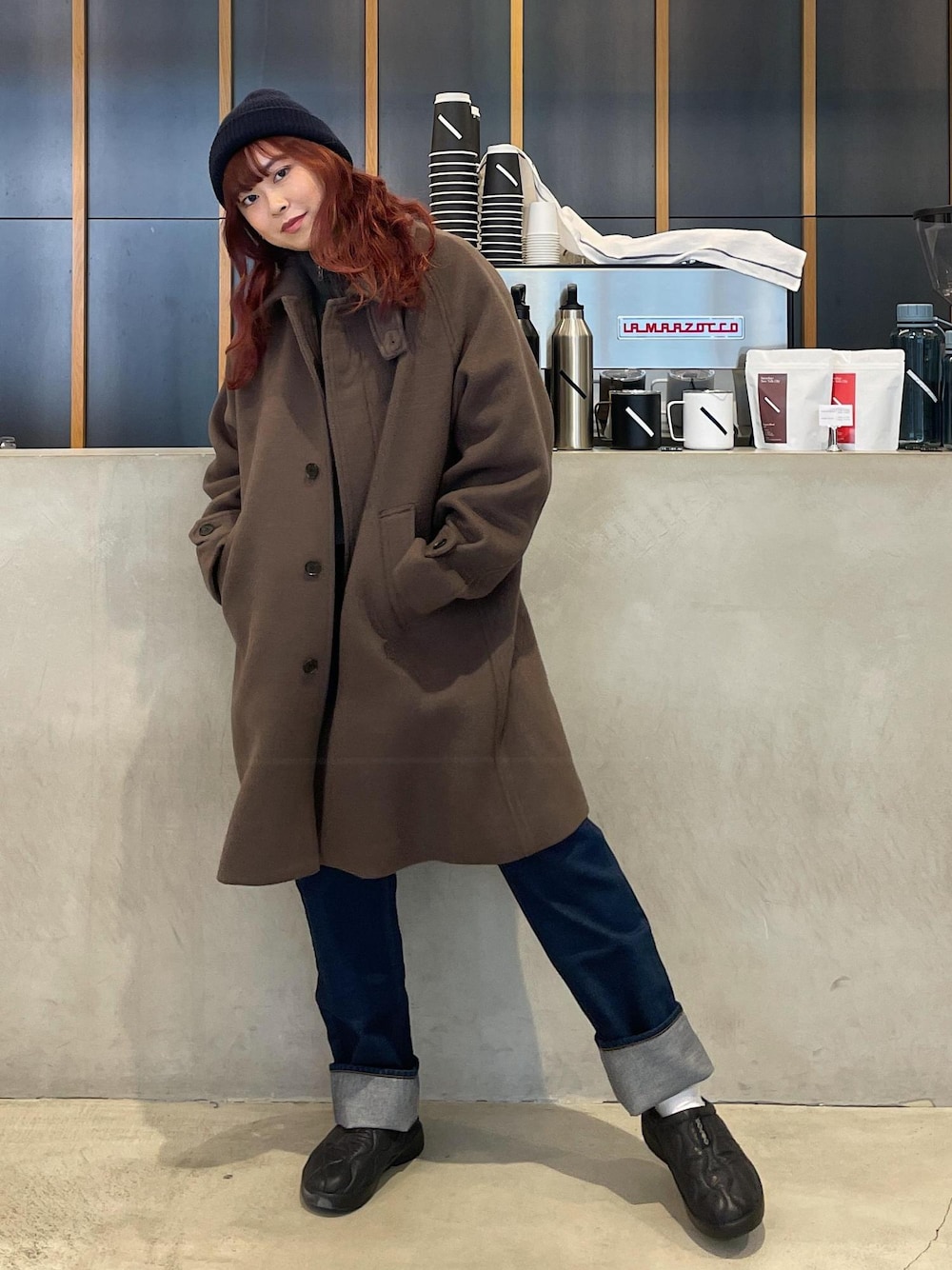 ウールのコートは、首元まで閉めると、 真冬も暖かく過ごせます。 しっかりめのコートと、 OOFOSの冬用でカジュアルでラフな印象に。 メンズでしたら、 コートの中にデニムセットアップ、 革靴合わせとかもバランス良さそうですね、、! カジュアルにも綺麗めにも 落とし込める、カラーとシルエットのコートです。 OOFOSは小さめサイジングなので、 いつものサイズより、0.5〜1cm上のサイズが ちょうどいいかと思います。