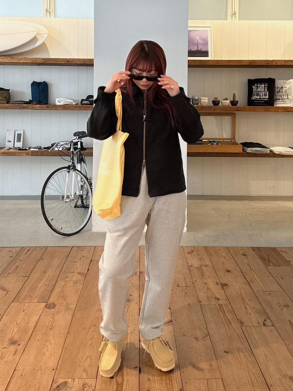 こちらのブルゾンは、 シルエットがメンズ、ウィメンズ問わず、ハマるかと。 今季のアイテムでの中でも、試着したほとんどの方が 気に入ってくださったアイテムかなーと^ ^ 私も即決で購入しました、 今の時期ぴったりの生地感です。 暗くなりがちなコーディネートに、 イエローを差し込んで春らしさをプラスしました。