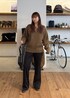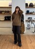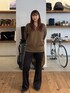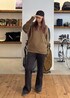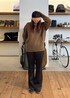 アルパカ毛のニットは、糸の色にムラや混ざり感がある、霜降りっぽい見た目で、さらに太番手を使用しているため、存在感のあり表情豊かな風合いが楽しめます。 人によっては、少し肌触りがチクチク気になら時にはインナーを一枚挟むのがおすすめです。 メンズでしたら、襟付きのシャツを中に仕込み、レイヤードも◎ 女性らしいシルエットを意識し、 パンツはフレアを選びました。 ぜひいろんなスタイルで楽しんでいただきたい ニットアイテムです!!