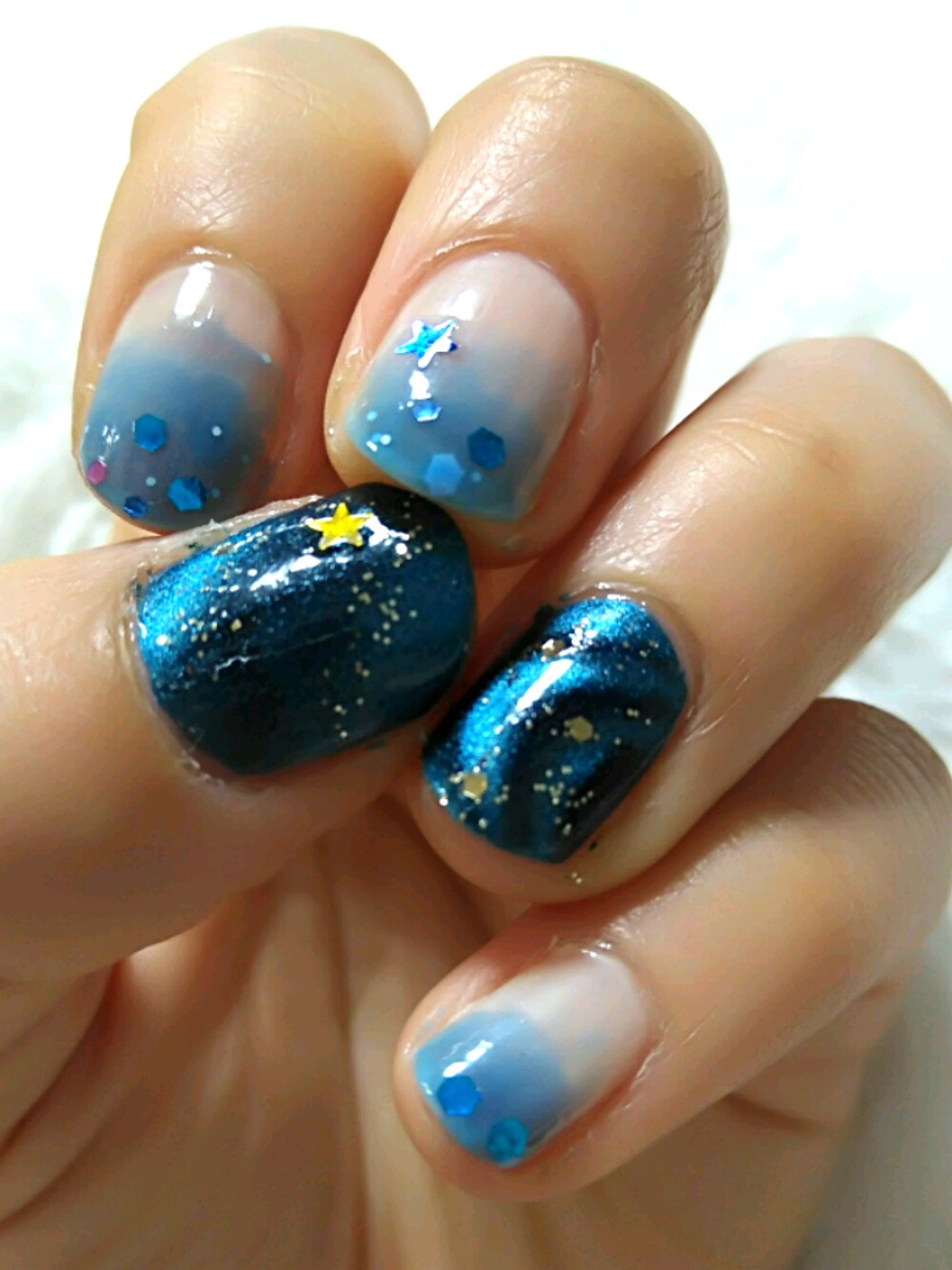 キャンドゥのマグネットネイルでギャラクシー風ネイル! 右手の親指は3回やり直した…