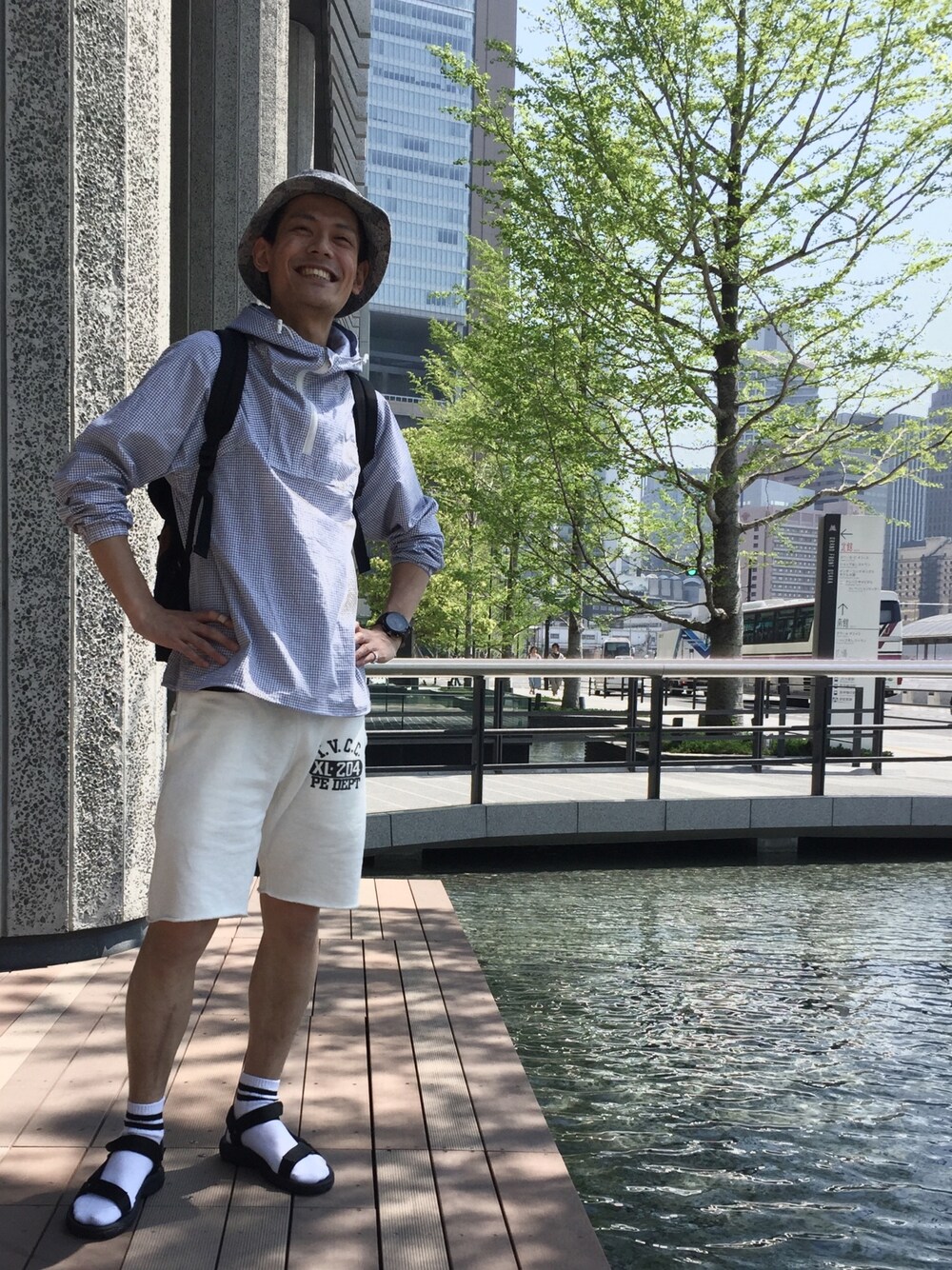 前回スポーツMIXで紹介しましたが、今回は足元をサンダルに変えてトレンド感のある着こなしに変えてみました。