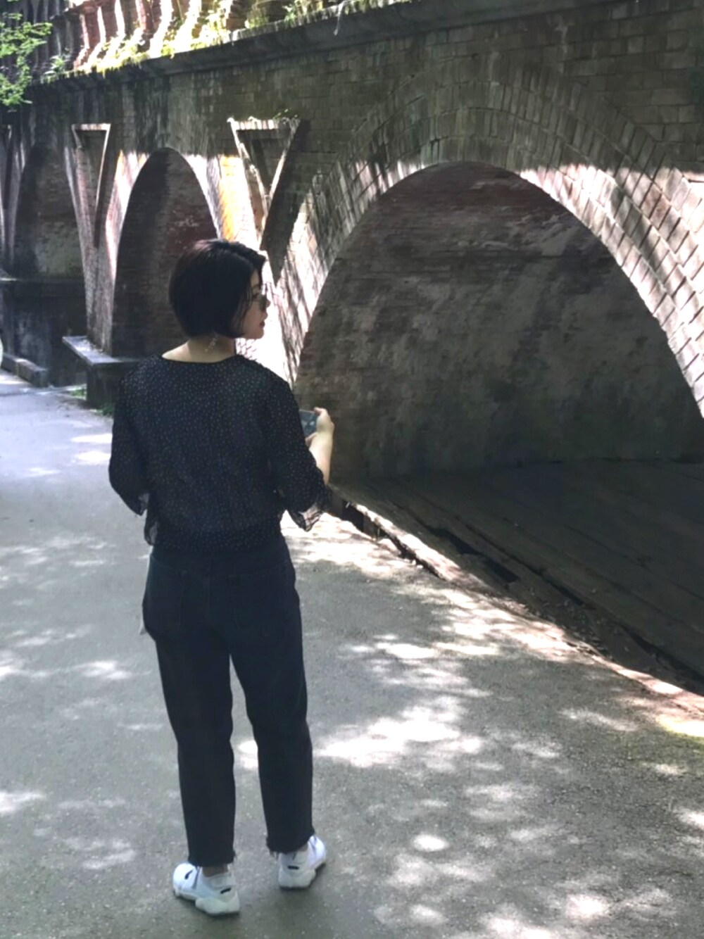 ドットブラウスでモノトーンコーデ