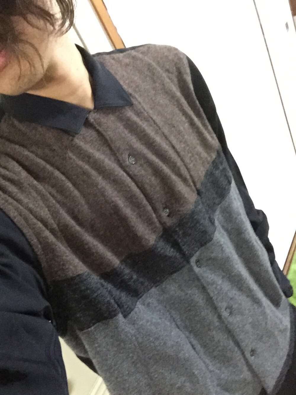 COMMEdesGARCONSの切替シャツ 髪がいい感じに伸びてきたよ