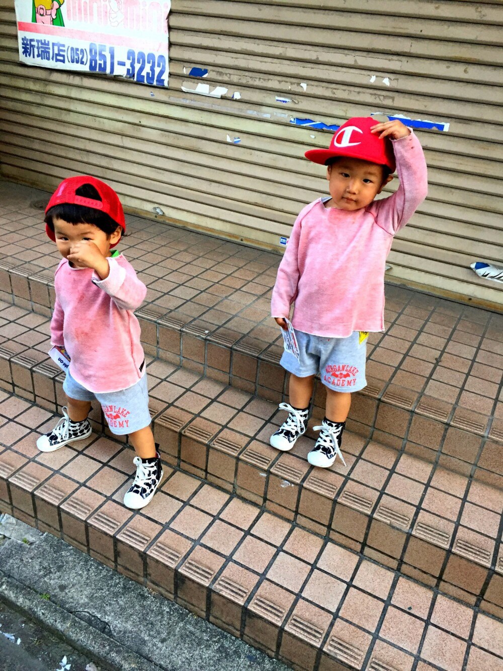 キャップデビュー!! かぶり物はとにかく嫌がる2人でしたが、今日は自分から手にとって、「ピッして」(買えって事)と言ってきかないので、パパのポケットマネーで買っちゃいましたー😅(GWの予算外につき) 後は飽きない事を祈るのみ…(笑)