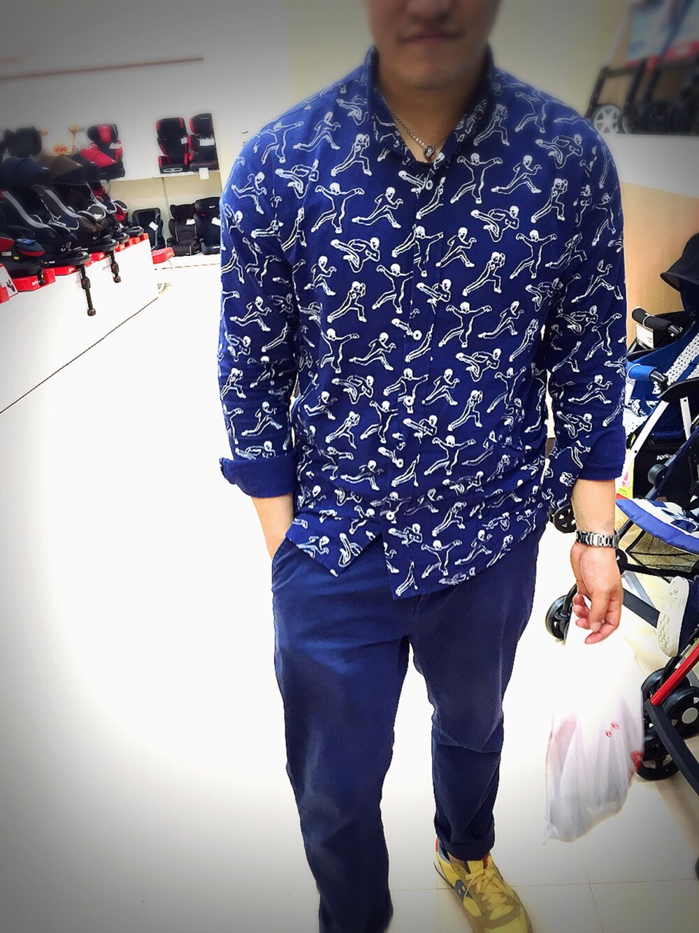 週末は家族デー! 今日は子ども服買いに赤ちゃん本舗に😃 Tシャツ2枚づつゲットしましたー フラフラ徘徊するパパのシャツは、 実は、 カンフー柄なのです😁 よく見てください♪