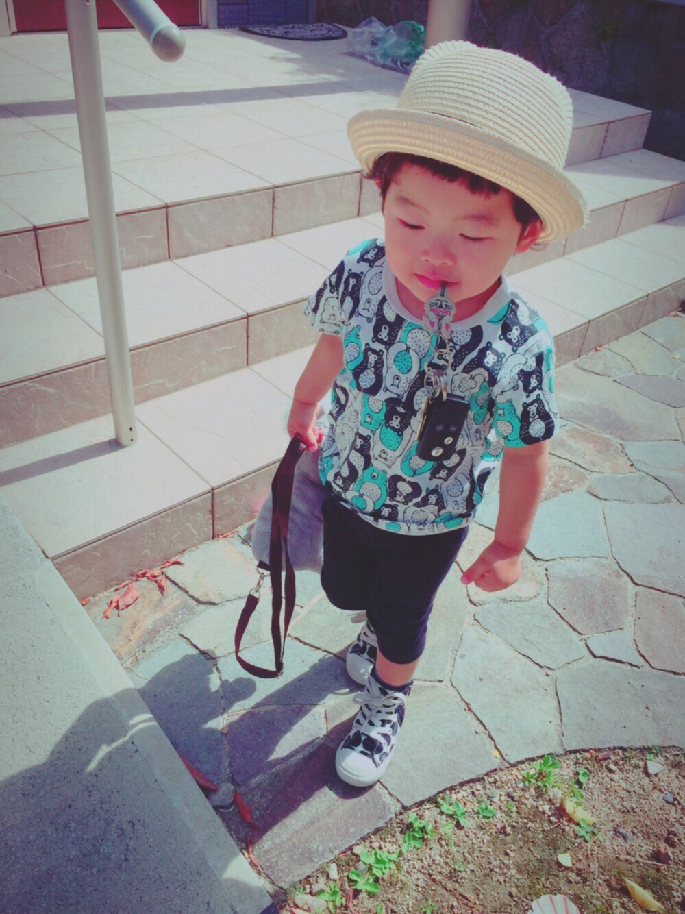 さぁ、週末だ、公園に行くぜ。 鍵は持ってきた、さぁ連れてけパパよ。 てな勢いで意外と絵になってるじゃ無いお兄さん😁20年早いぜ(笑)