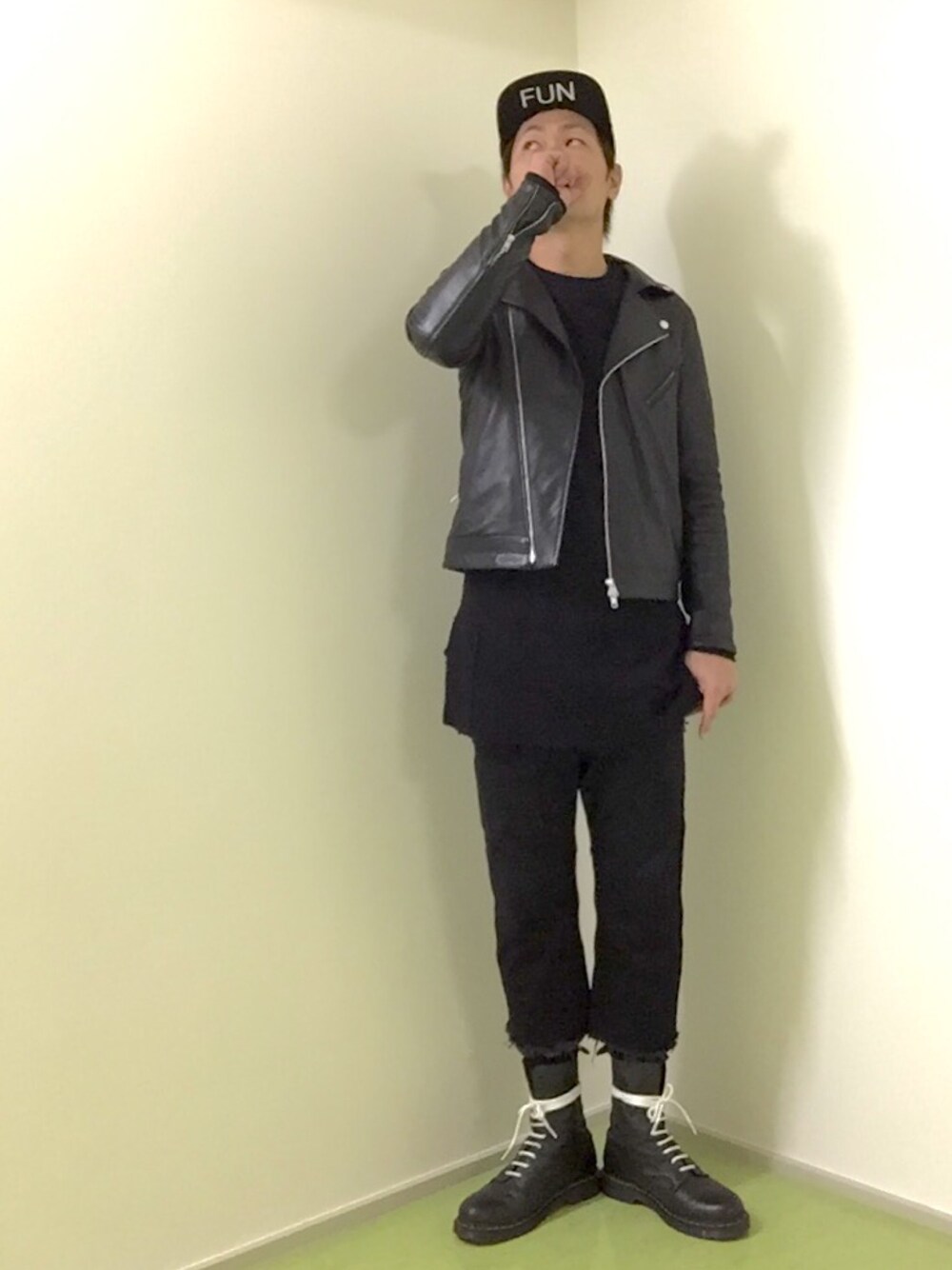 このキャップ、こないだフリマ出した時に向かいのブースのかわい子ちゃんが100円で譲ってくれました♫ このカットソー、めっちゃ大好きやのに… 黒やからデザインハッキリ写らへん……… ブラックコーデあるある やね。。。