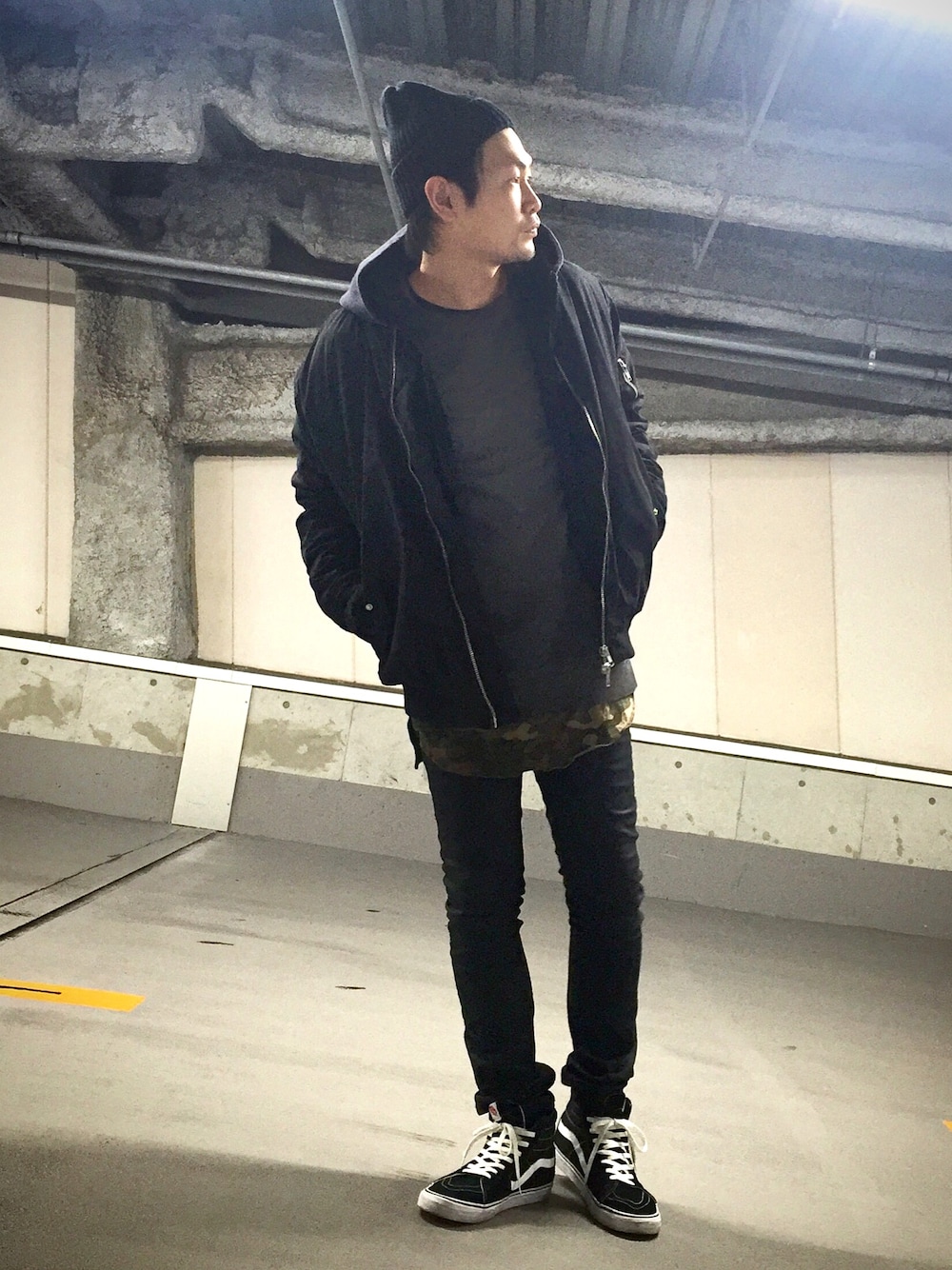 コーティング加工してるパンツなんですが、黒って素材感出すの難しいですね。。。 上はオーバーサイズとロング丈でボリューム出してます。 そんな感じでーす! インスタ→masaki0621
