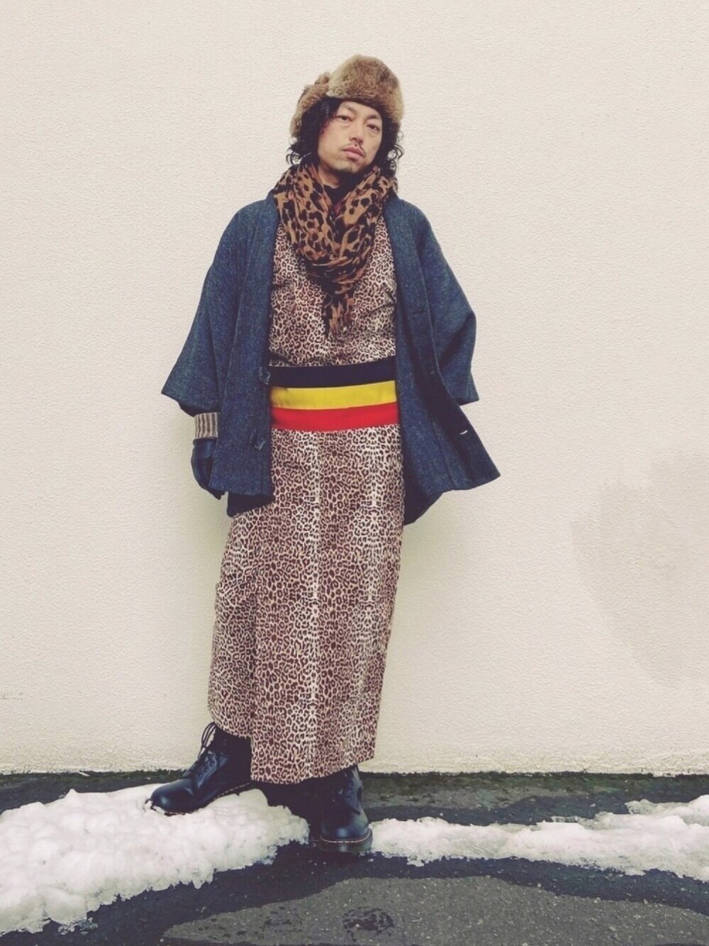 【豹柄浴衣コーデ】 季節外れの浴衣ですが着たかったのでヒートテック等で防寒してます。 浴衣はリサイクルで1000円、袖が大きい和コートは蚤の市で1500円でした。