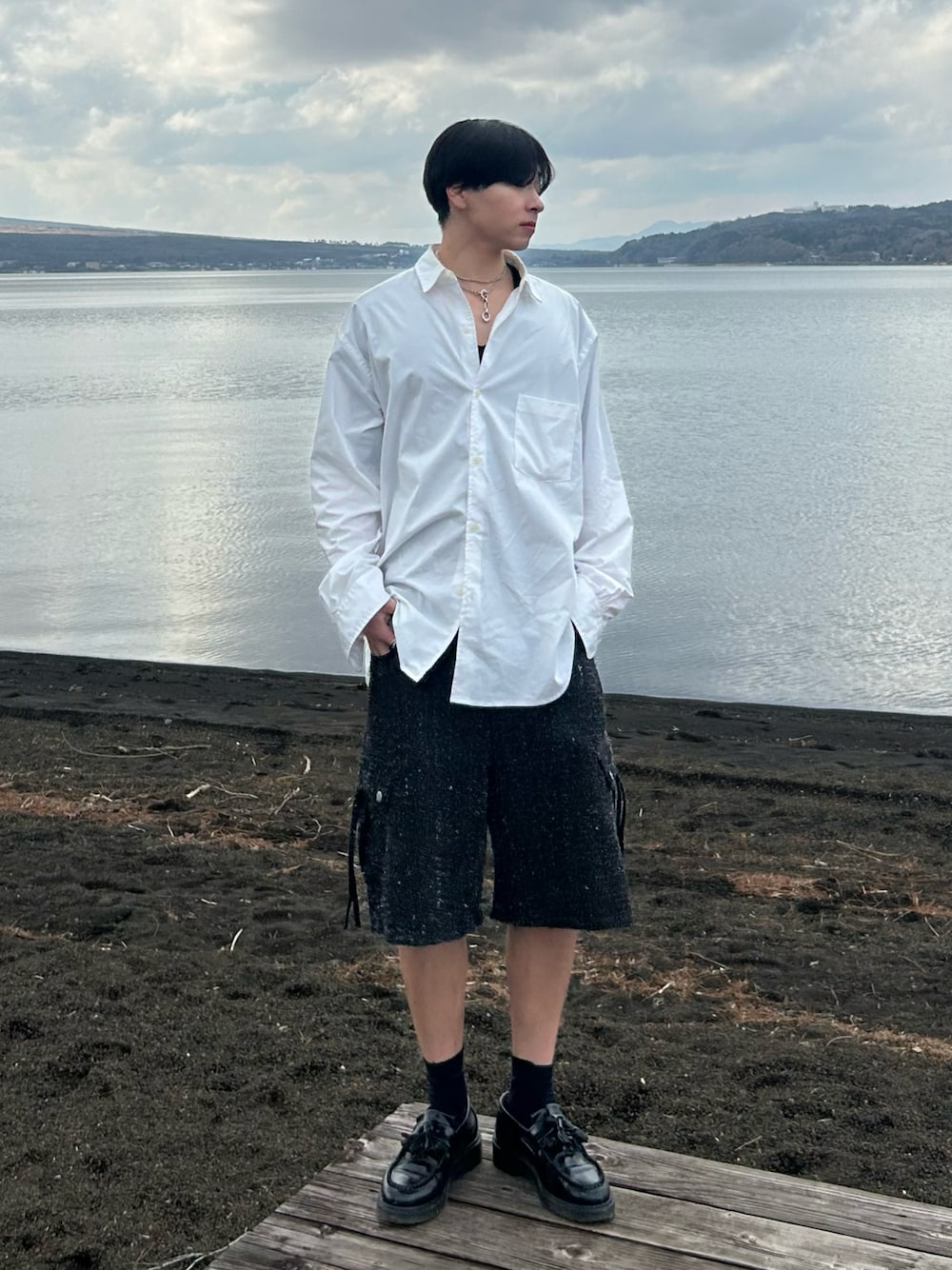まさき選手のシャツ/ブラウス「【LUENNA】 Wide Collar Loose Fit Shirt /ワイドカラー ルーズフィット シャツ」を使ったコーディネート