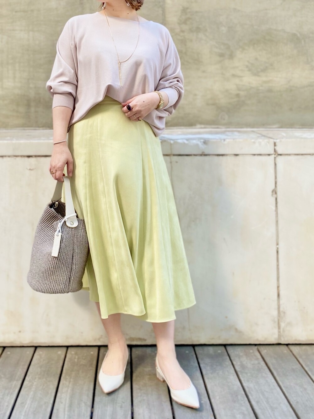 キレイな発色のレモンイエロー💛🤍💛🤍 トップスはホワイトよりもグレージュの方が落ち着いた大人の雰囲気🧚♂️🌿🌿