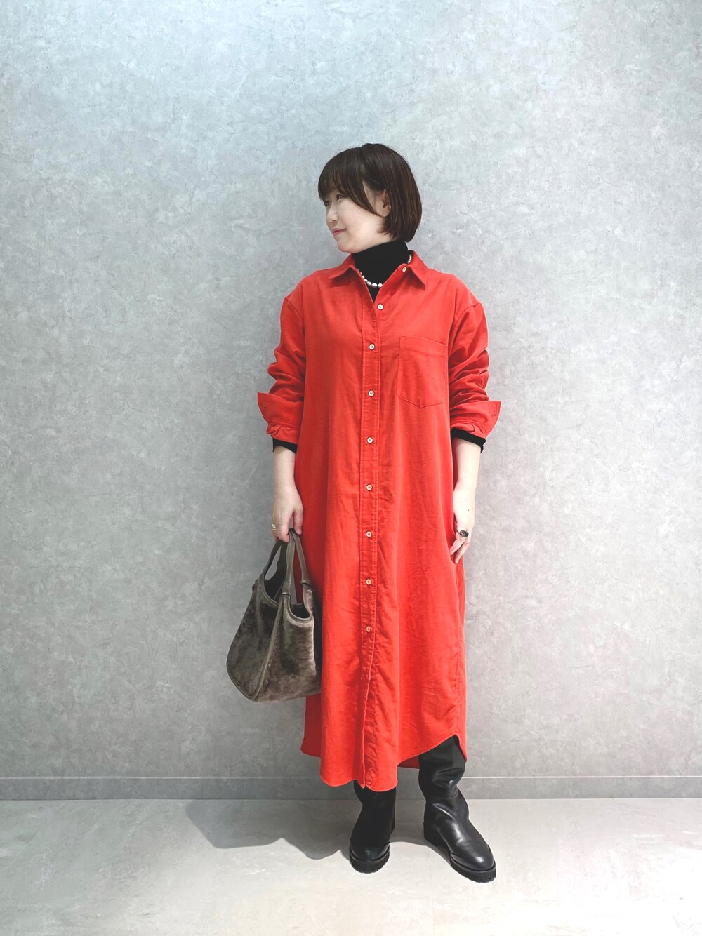 鮮やかなオレンジ🍊 主役になれるシャツワンピは ダークになりがちな秋服のアクセントに! 細いコーデュロイなので綺麗めな印象でお召しいただけます🧡