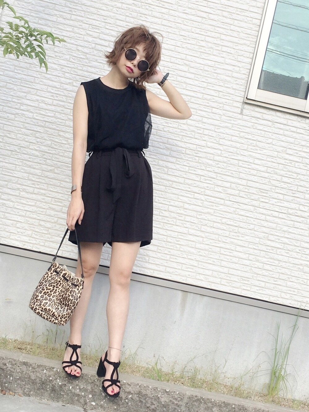 まだまだ暑い日が続いてます。 ノースリーブに短パンと 小学生的なコーデに。笑 オールブラック、落ち着きます❤︎ 雑誌付録のレオパードバッグで ちょっと秋要素を…。 雑誌付録のクオリティすごいっ!