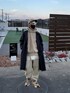 おはよ〜ございます♪ ご覧頂きありがとうございます😊 ベージュ✖️ベージュ パーカーにスウェットパンツのラフさに チェスターコートを添えて 久々にサカイ履いた👟