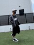 テーラードの長袖とショートパンツの組み合わせ こういうの好き😊 ミハラのドデカのスニーカーが、目立ってイイ👍
