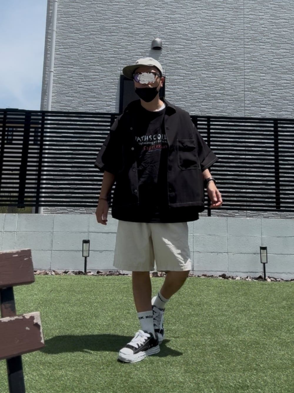 ご覧頂きありがとうございます♪ トップは黒×黒 パンツとキャップを白でコーデ