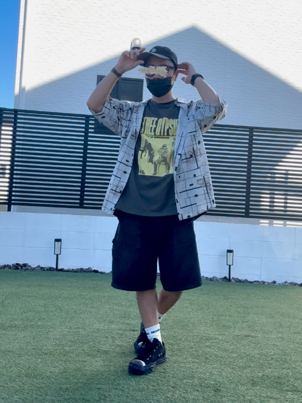 ☆m(@s@)shi★のシャツ/ブラウス「【a】とろみシルクタッチポリエステル 総柄半袖ビッグシャツ/ルーズシルエットシャツ」を使ったコーディネート