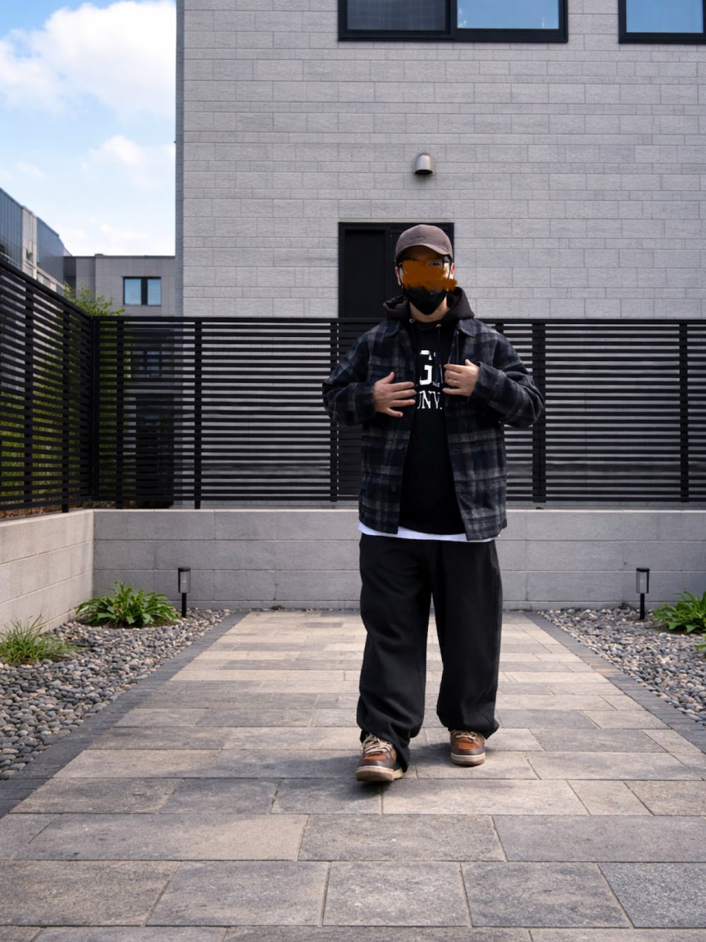 パーカーにチェックシャツジャケット この組み合わせ○