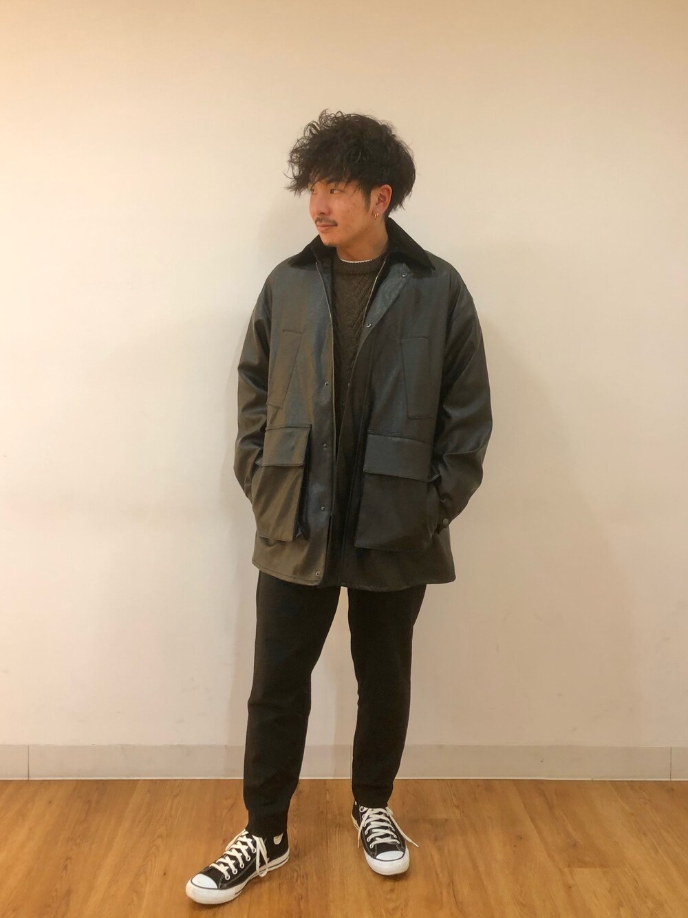 ジャケットはオーバーサイズの作りで襟元はコーデュロイ素材を使用しているのでデザイン性がすごくいいです! カラーもグリーンとブルーもつくりがあるので女性にもオススメです! インナーとパンツは暗めなカラーで合わせましたが明るめなカラーと合わせても相性バッチリです!