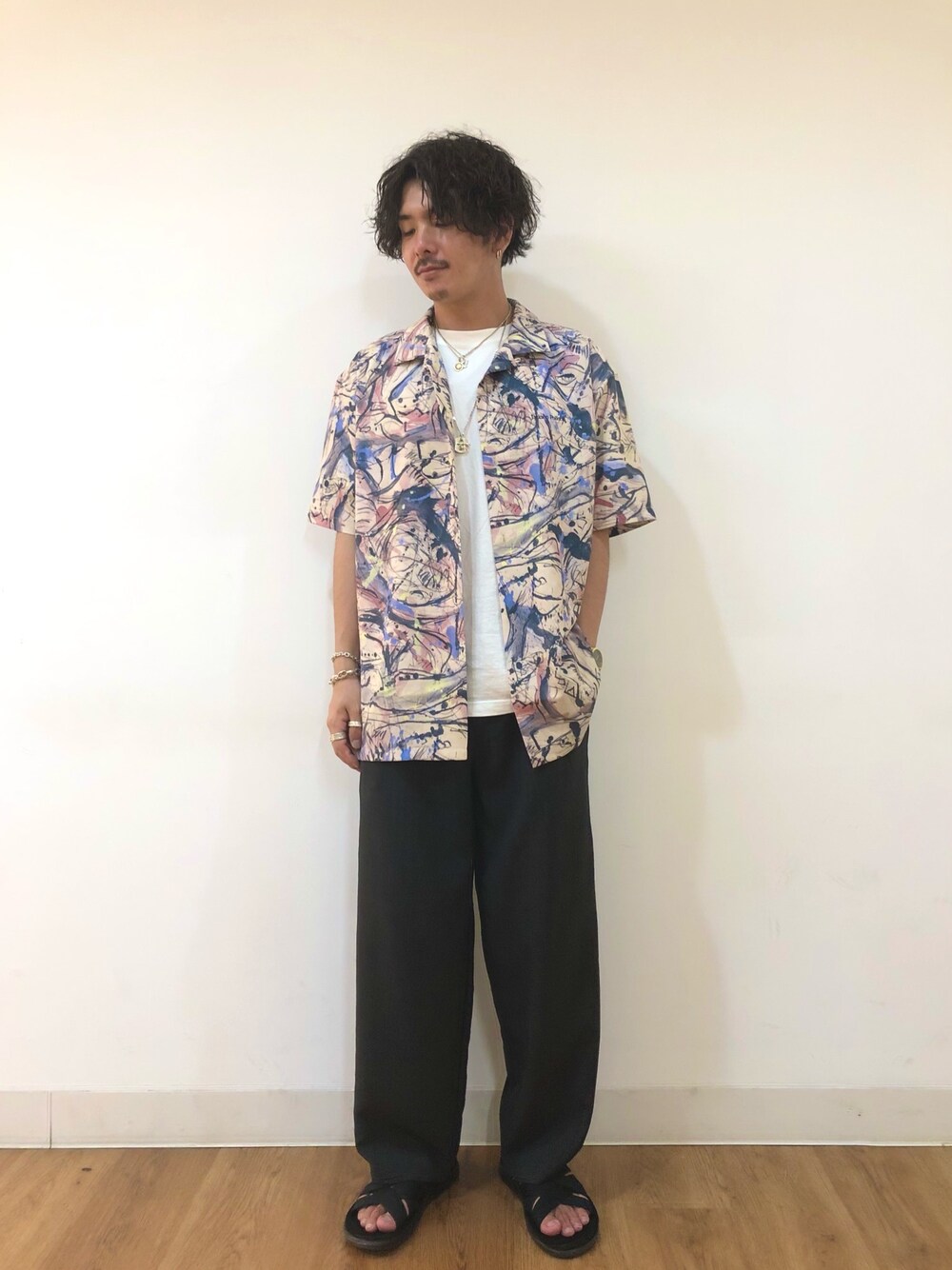今回は新たに入荷したグラフィックシャツの新色を着てみました! こちらの柄のシャツは色合いが少しビンテージの様な色合いなので古着やこう言った色合いが好みの方はおすすめです! パンツは黒や白で合わせると柄が目立ちやすくなるかと思います! 是非お持ちのお洋服と組み合わせて着てみてくださいませ!