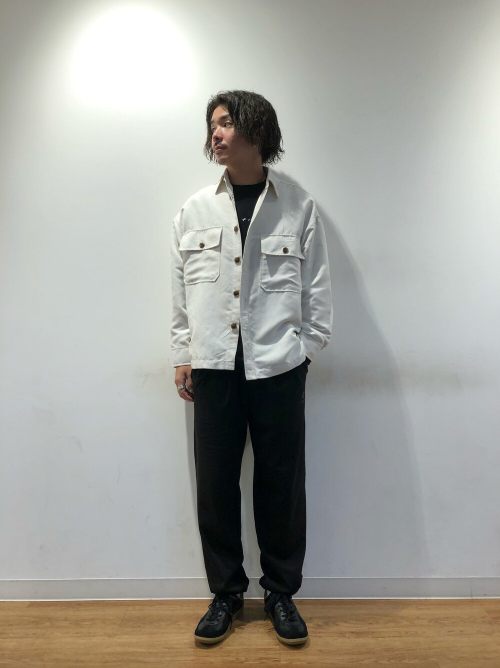 こんにちは! 今回は人気エコスエードシャツの白に黒の刺繍が施されたニットを合わせて、あえてパンツはスウェットにしてみました! スエードシャツはカラーも豊富でブルゾンタイプもあるので用途によってお選びいただけます! ニットも刺繍のないものとあるものがありこちらも合わせやすい色合いが多いのが特徴です!! パンツはユイセルから出た新作でユイセルのマークがワンポイントでカッコいいアイテムになってます!