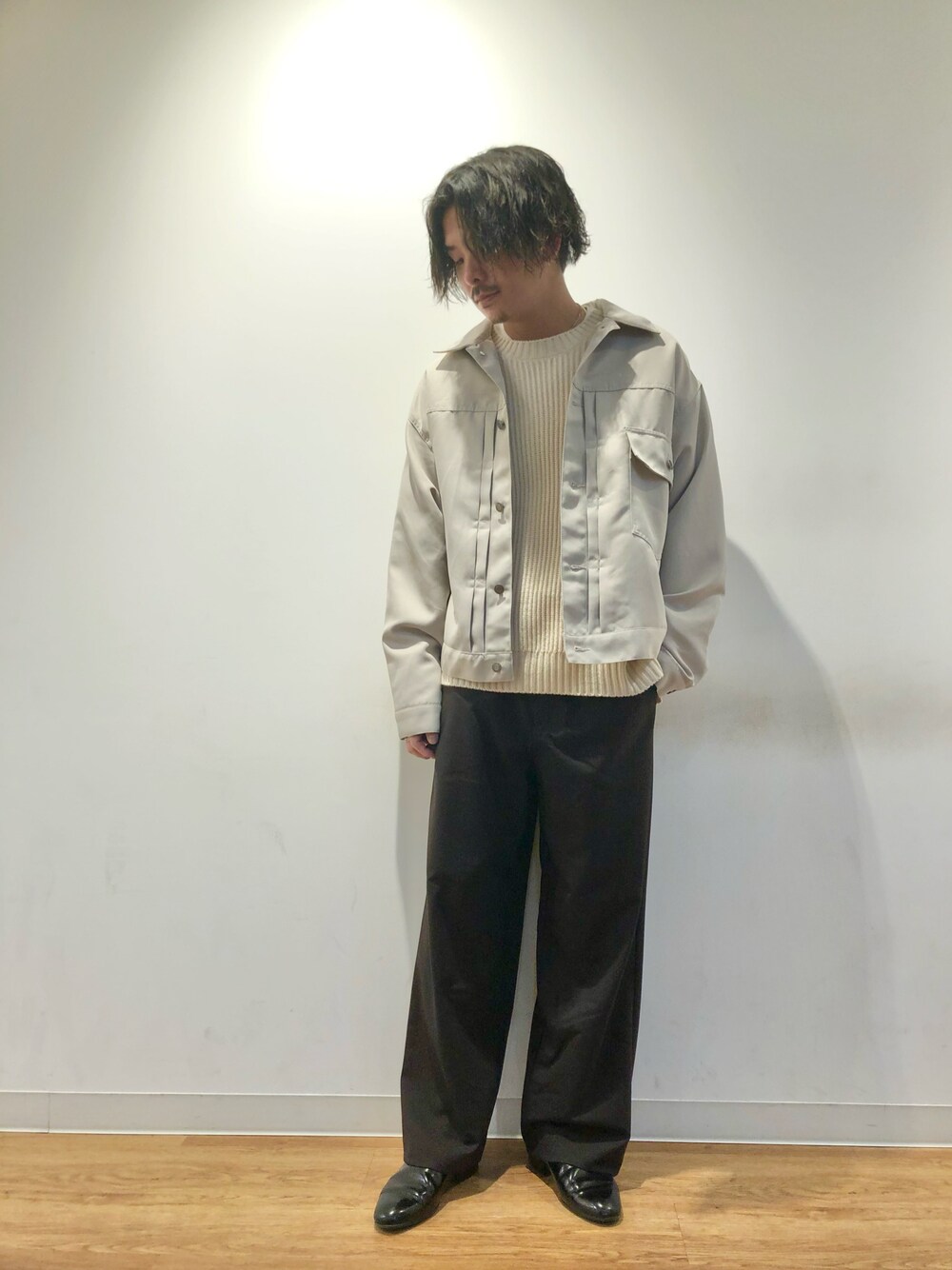 こんにちは! 今回はユニセックスで着れるステッチのニットにGじゃんとスラックスを合わせて春っぽいコーデをしてみました! ニットはほかにもカラーがありレイヤードしたりしてきても可愛いです! ジャケットはセットアップ用でセンタープレスパンツもあり履き心地もいいのでぜひ見てみてください!
