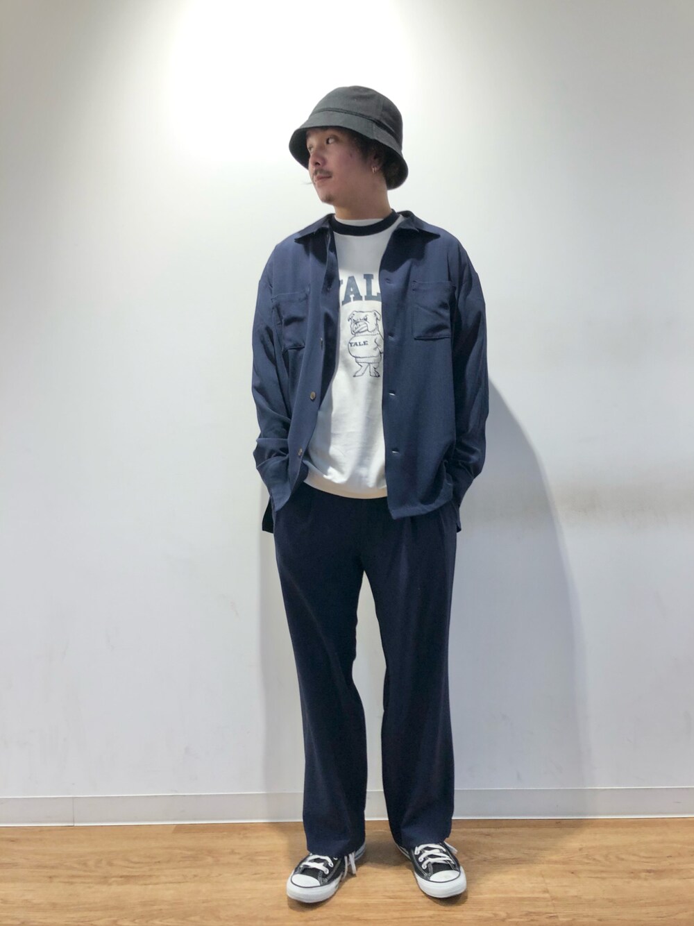 今回は人気セットアップシリーズの新色ネイビーをロゴTと着てみました! リンガーTは人気アイテムでロゴも可愛くユニセックスでも着れるのがいいです! セットアップもシワが付きづらくカラーも豊富なので是非ご覧ください!
