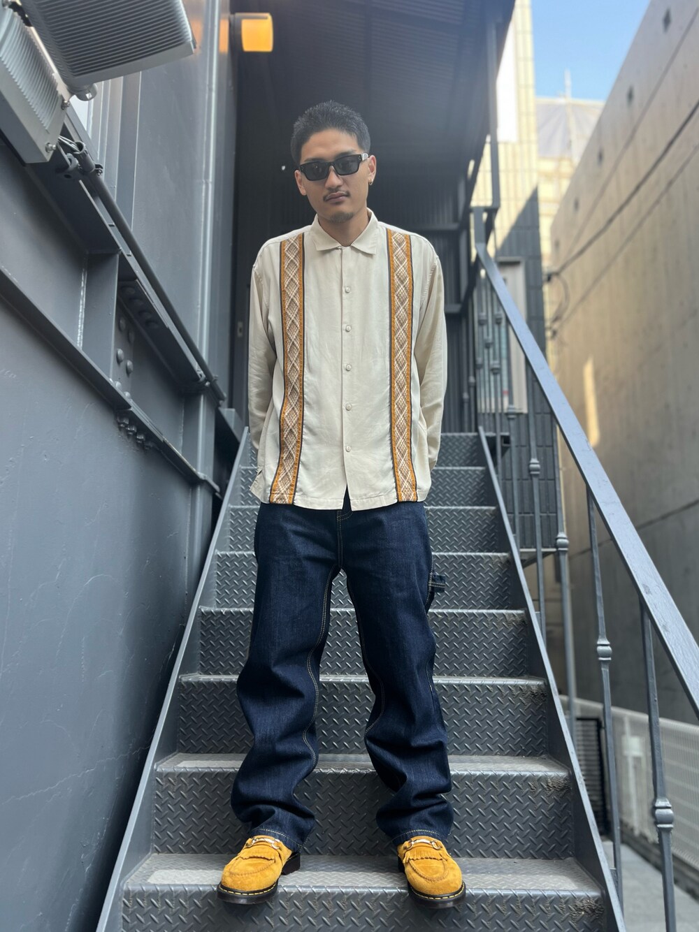MASATO(LHP 裏原宿店)のデニムパンツ「DankeSchon/ダンケシェーン/13.50oz COWSUEDE WIDE DENIM」を使ったコーディネート