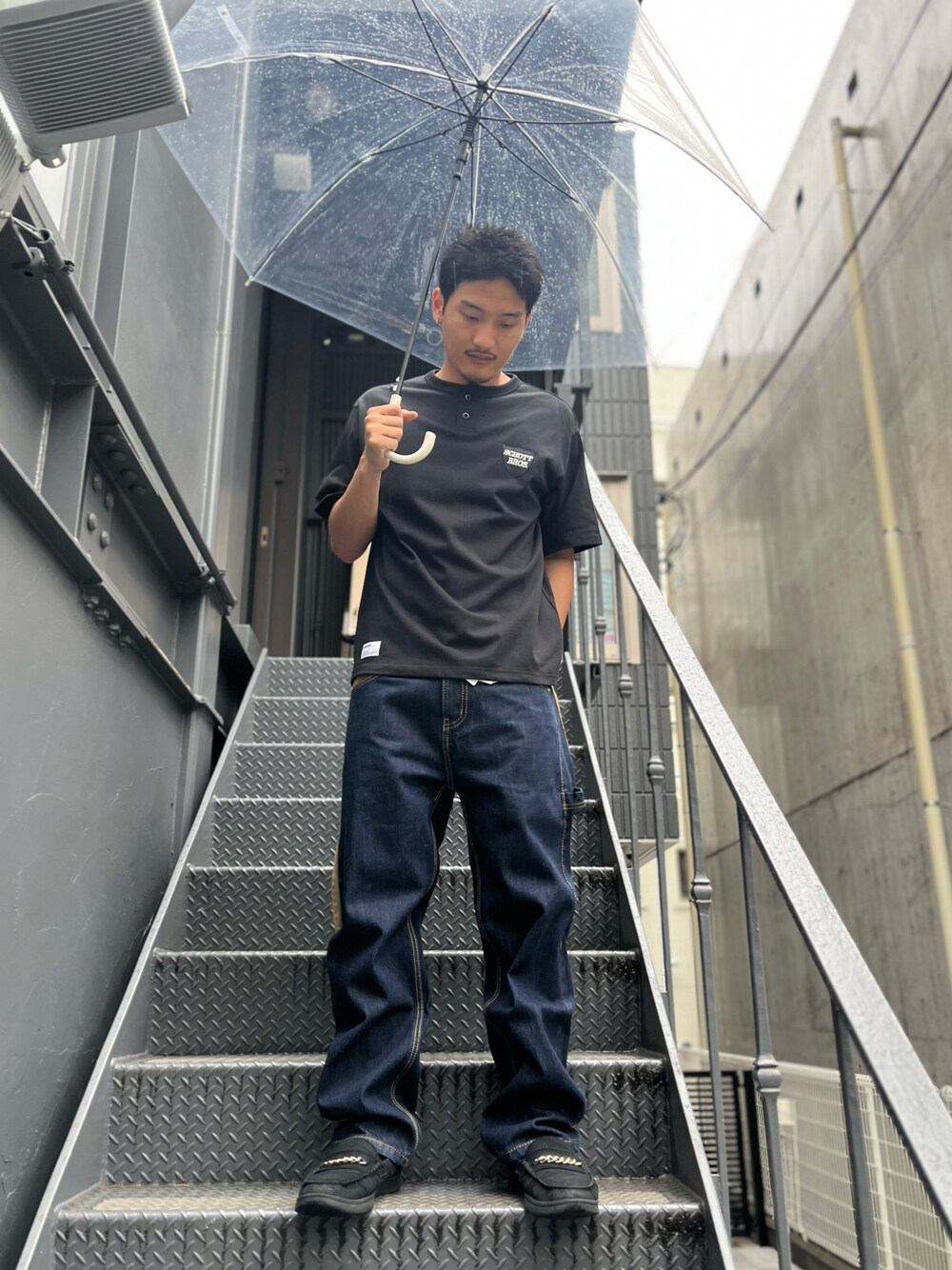 MASATO(LHP 裏原宿店)のデニムパンツ「DankeSchon/ダンケシェーン/13.50oz COWSUEDE WIDE DENIM」を使ったコーディネート