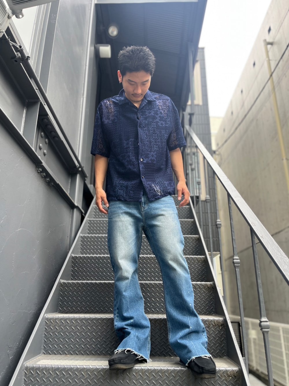 MASATO(LHP 裏原宿店)のデニムパンツ「DankeSchon/ダンケシェーン/Flared pants/フレアパンツ」を使ったコーディネート
