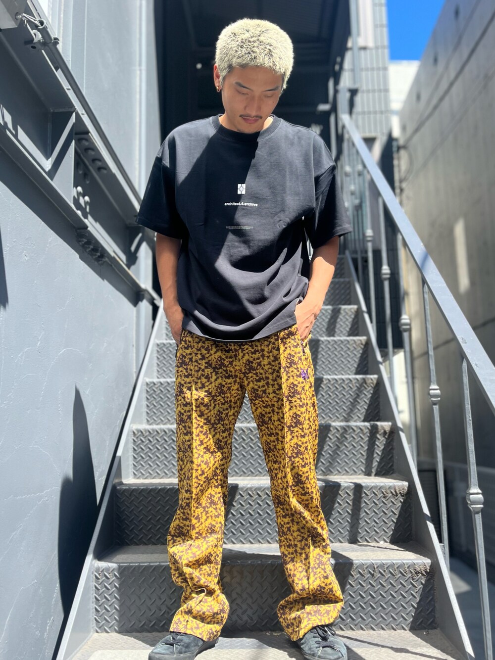 新作のneedlesのパンツです! 派手な柄なのでシンプルなTシャツで合わせました! オススメです!