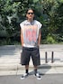 MASATO(LHP 裏原宿店)のTシャツ/カットソー「DankeSchon/ダンケシェーン/TIEDYE NOSLEEVES NUMBERRING」を使ったコーディネート