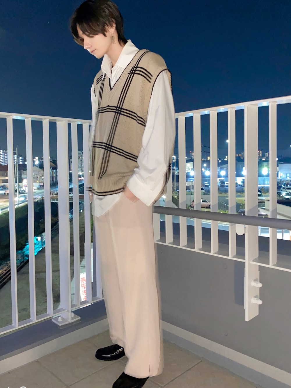 MASAYA のベスト「WEGO/チェックジャガードベスト」を使ったコーディネート