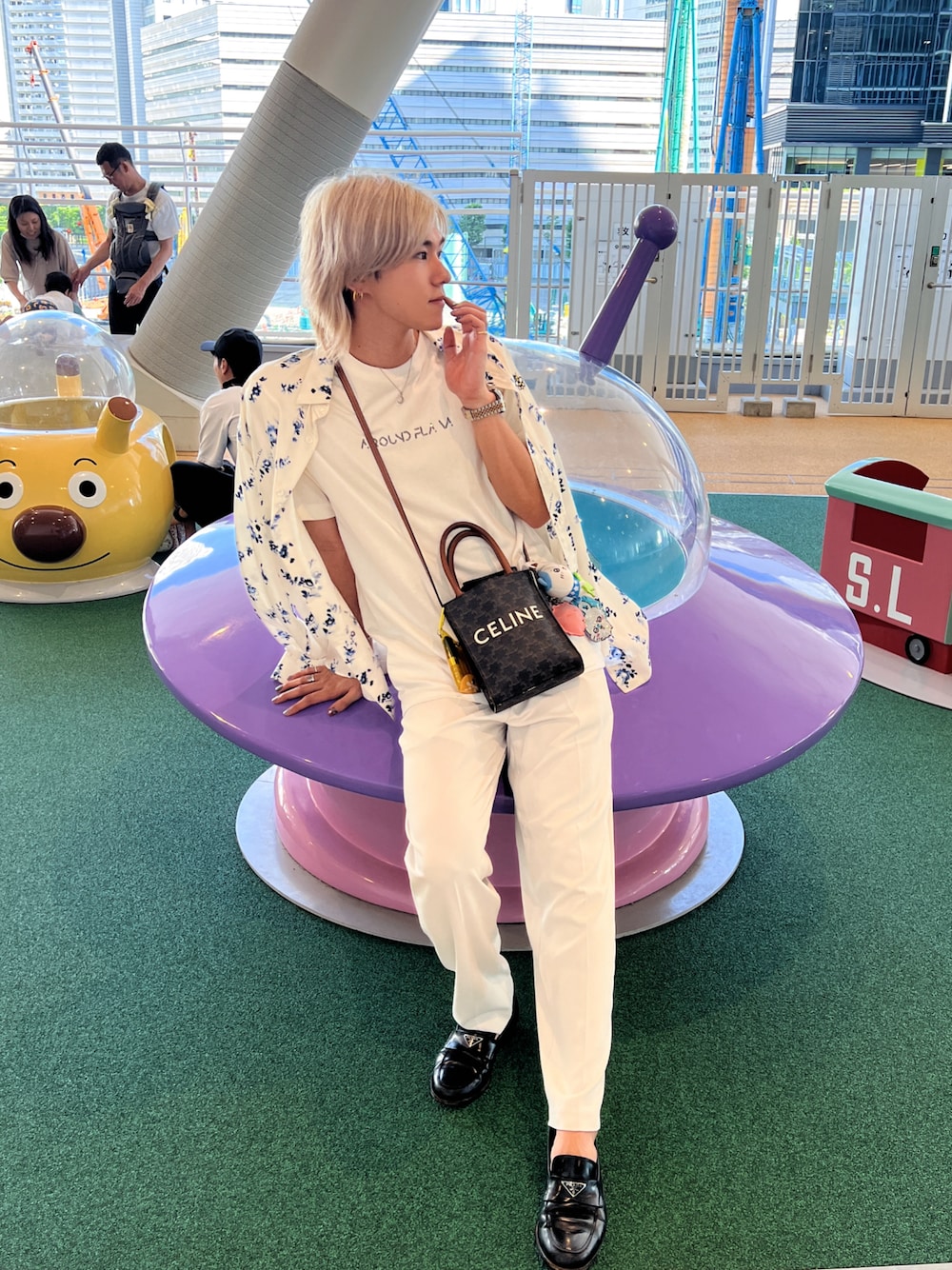 MASAYA のTシャツ/カットソー「loose fit spangles logo T / ルーズフィット スパンコール ロゴTシャツ」を使ったコーディネート