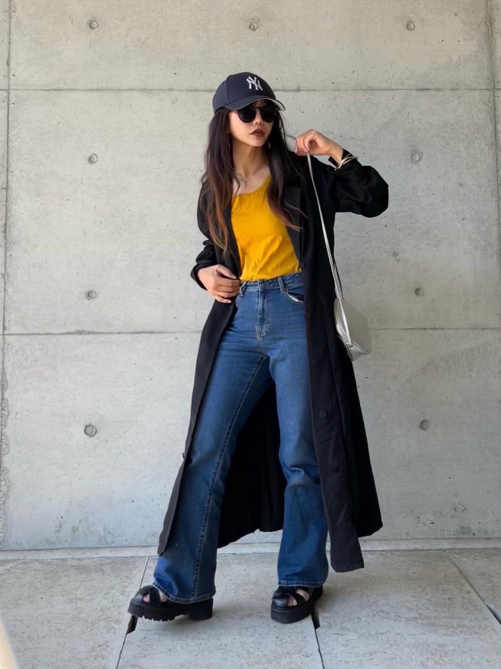 【LVEU.】 Jacket style pleated long one-piece / ジャケット風プリーツロングワンピース(Ai select) 【GU】 フレアジーンズ 【CITEN】 トラックソール グルカサンダル ✽.。.:*・゚ ✽.。.:*・゚ ✽.。.:*・゚ ✽.。.:*・゚ 羽織るだけできまるジャケット風ワンピース ワンピースなのにメンズライクにしてもかっこいいのは、ジャケット風になってるからかな (*´∀`*) そのまま着ても可愛いけどなんか勿体なくて(?)羽織りに使ってしまいます 白のタンクトップにしようかと思ったけど元気なビビットカラーで✨