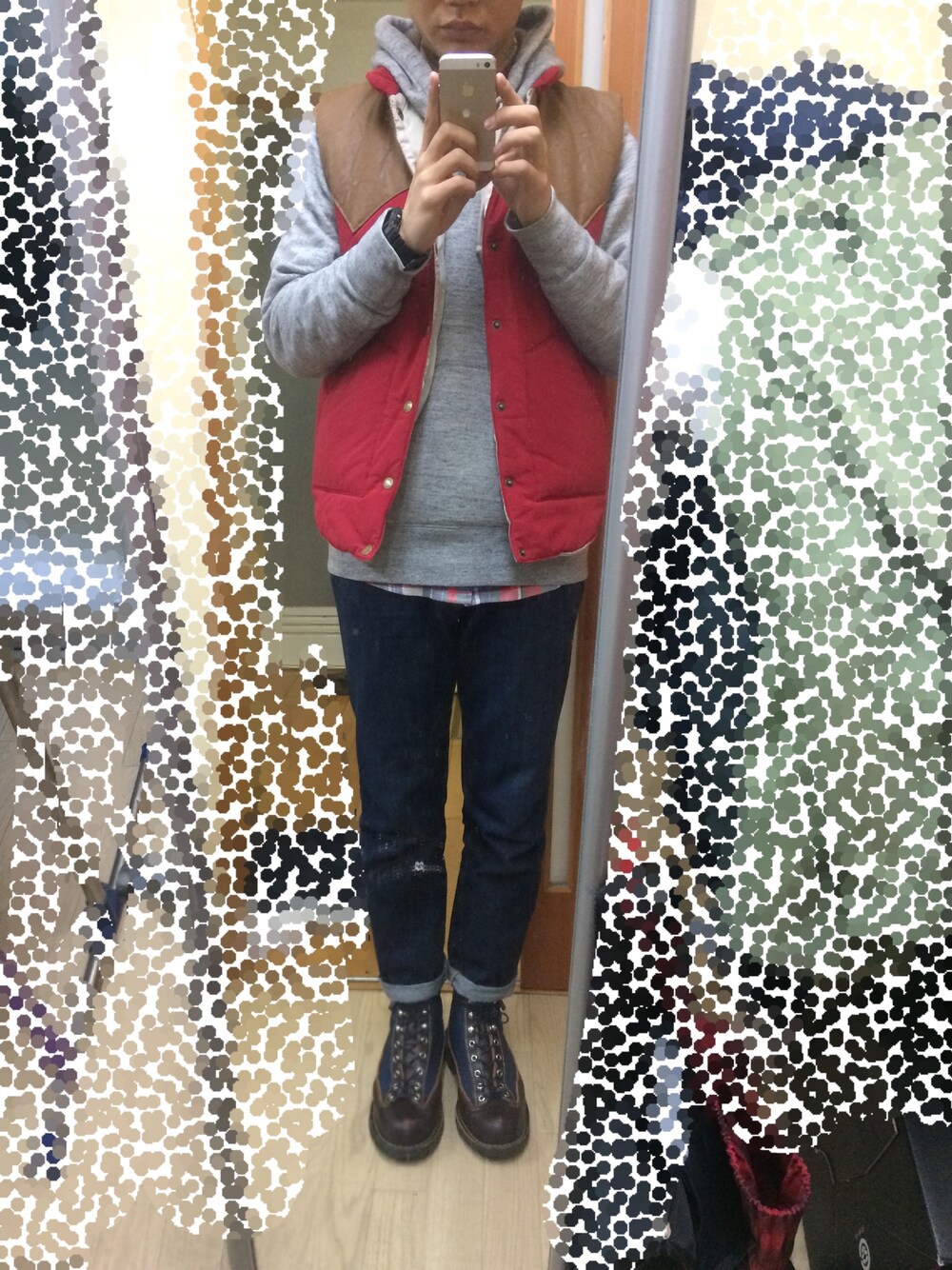 今日は、ネルシャツ、ダウンベスト、ブーツのアメカジスタイル!